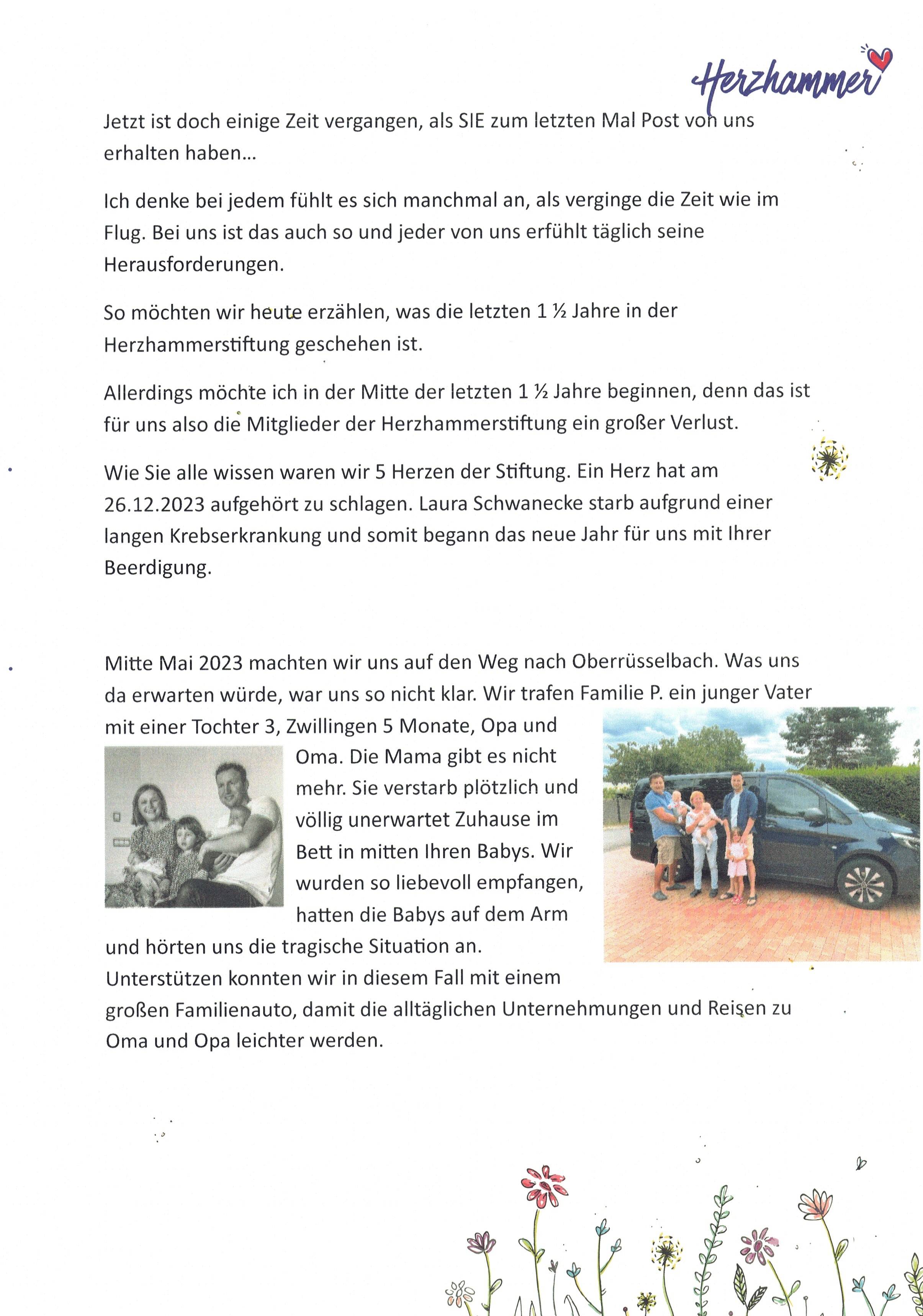 Wie Sie alle wissen waren wir 5 Herzen der Stiftung. Ein Herz hat am 26.12.2023 aufgehört zu schlagen. Laura Schwanecke starb aufgrund einer langen Krebserkrankung und somit begann das neue Jahr für uns mit Ihrer Beerdigung.